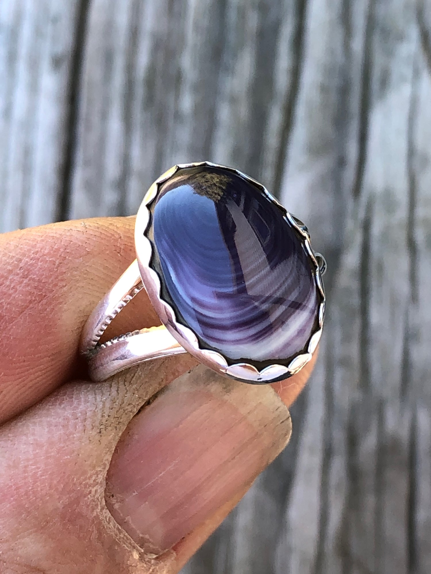 Wampum is a traditional shell of the Eastern woodlands tribes of Native America. The white and the purple comes from a quahog shell clam.
