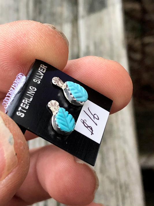 Zuni Turquoise Leaf studs with sterling silver