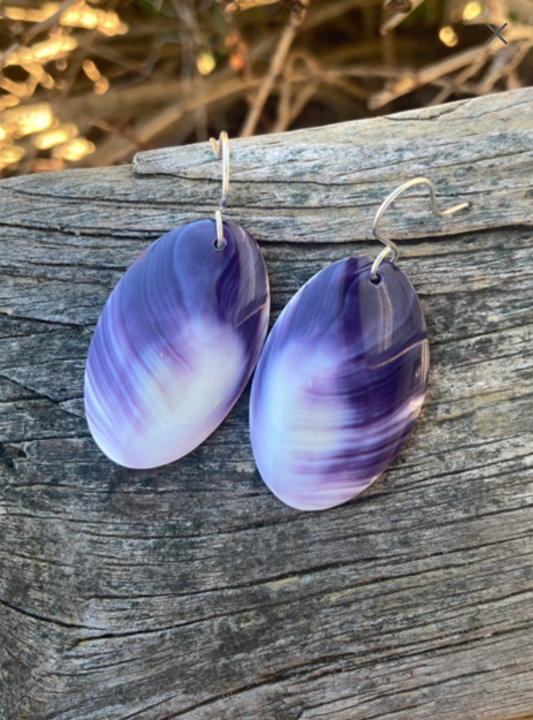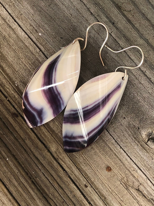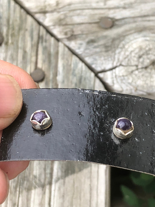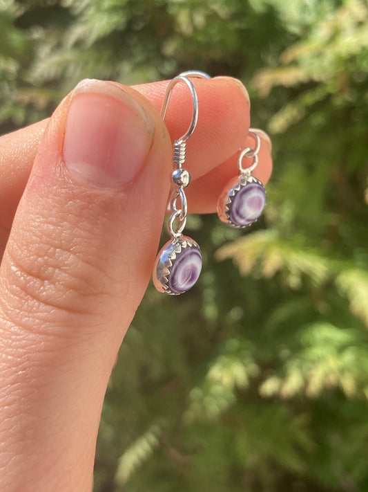 Dainty Sterling Silver Purple Wampum earrings with rubber backing Sterling Silver Cute shell jewelry