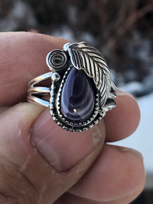 Intricate Wampum Tear Drop Leaf Sterling Silver Ring.