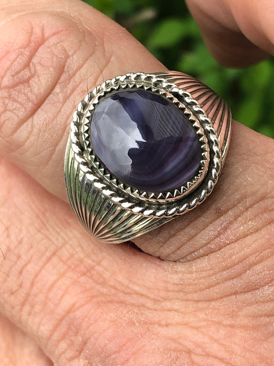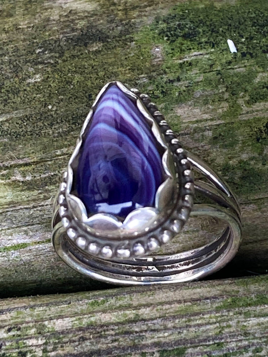 Intricate Wampum Tear Drop Sterling Silver Ring.