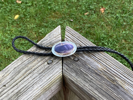 Wampum Oval bolo tie hand crafted formal wear sterling silver