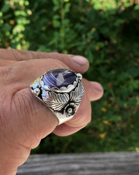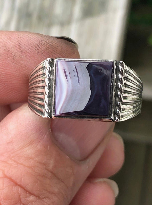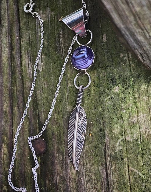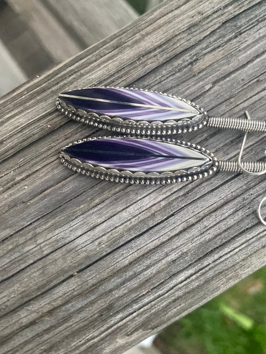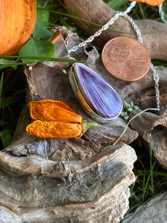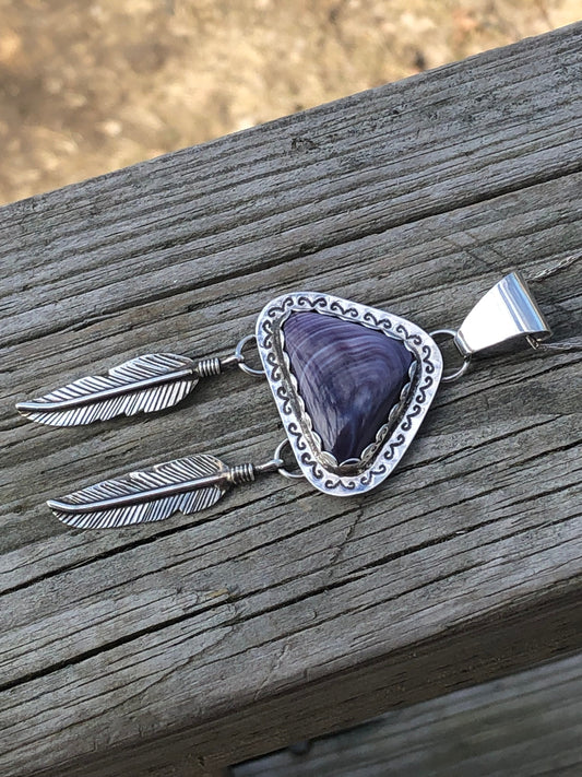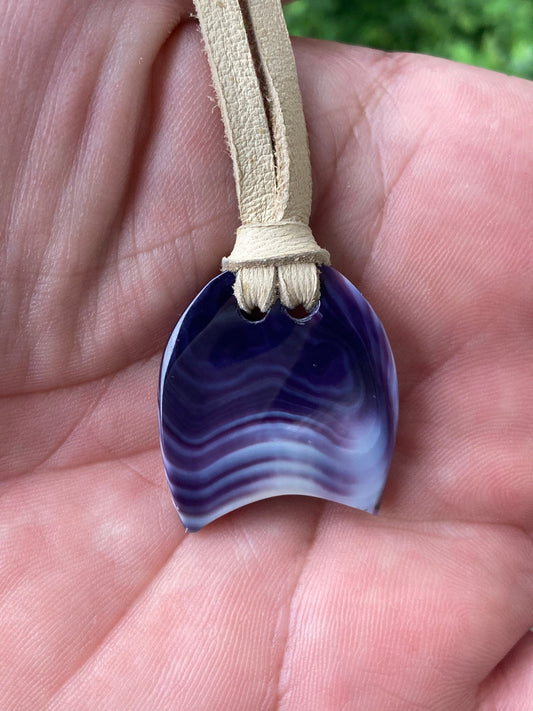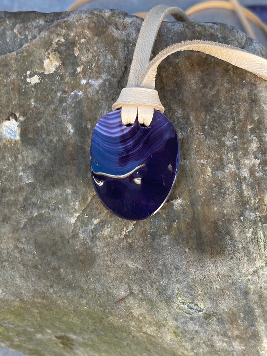 Dark Oval wampum deep purple Traditional real deerskin charm