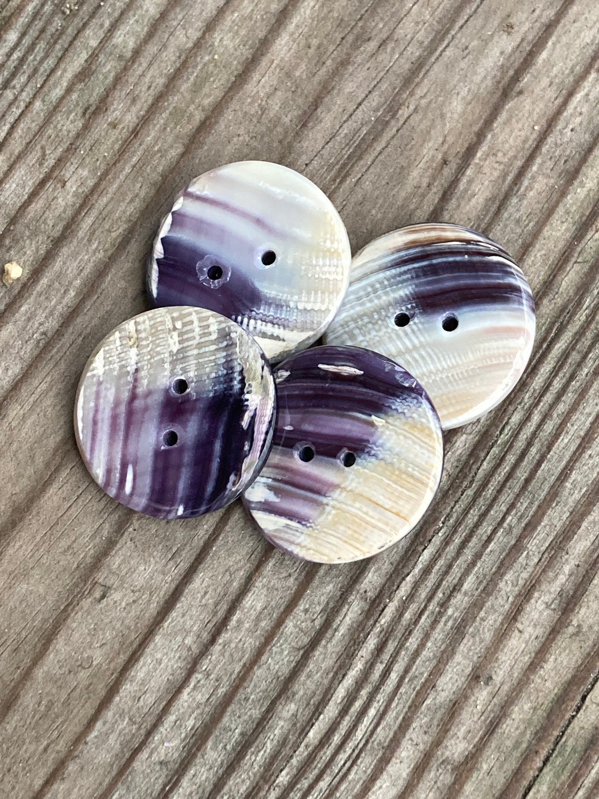 Wampum is a traditional shell of the Eastern woodlands tribes of Native America. The white and the purple comes from a quahog shell clam.