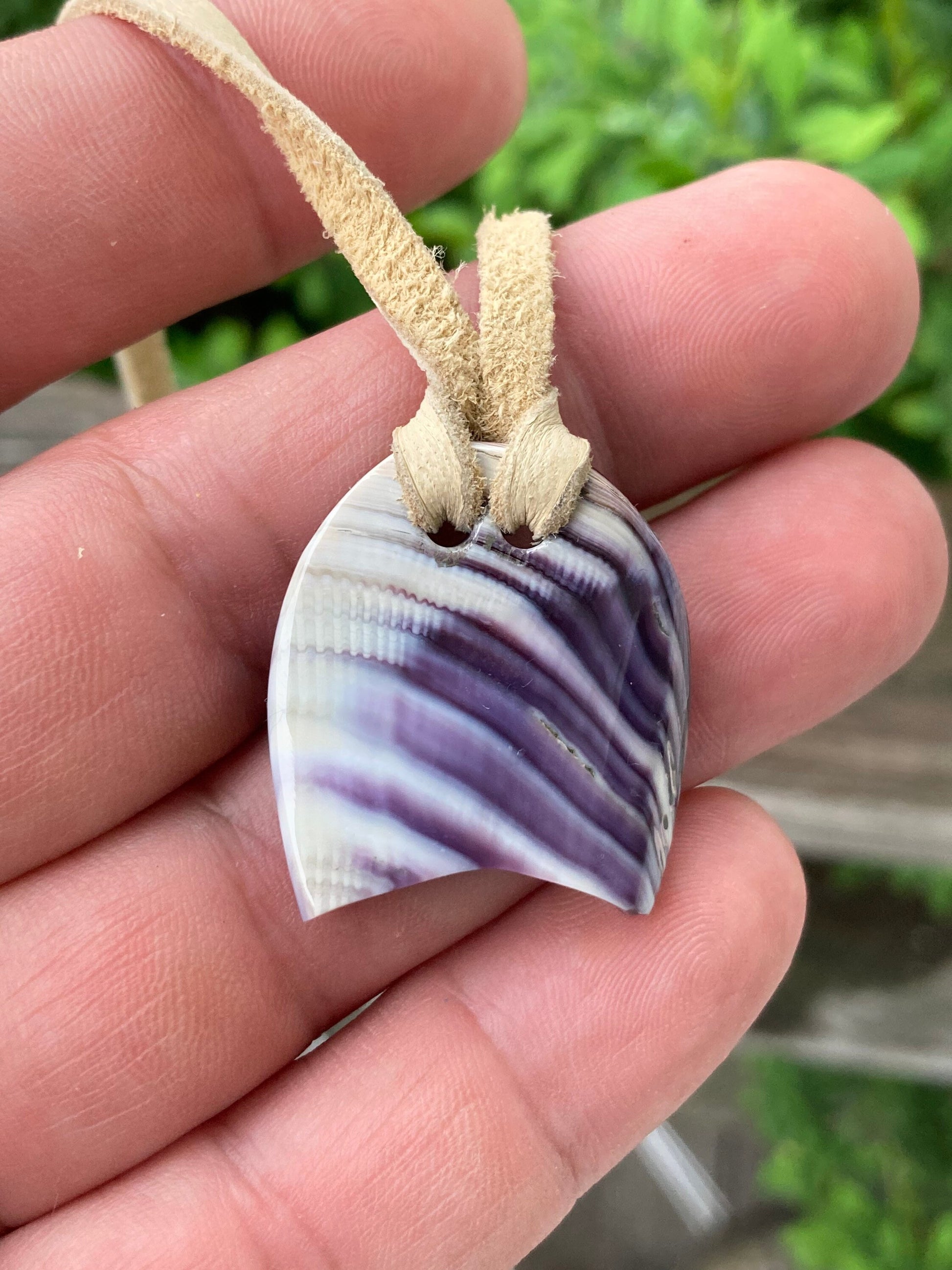 Wampum is a traditional shell of the Eastern woodlands tribes of Native America. The white and the purple comes from a quahog shell clam.