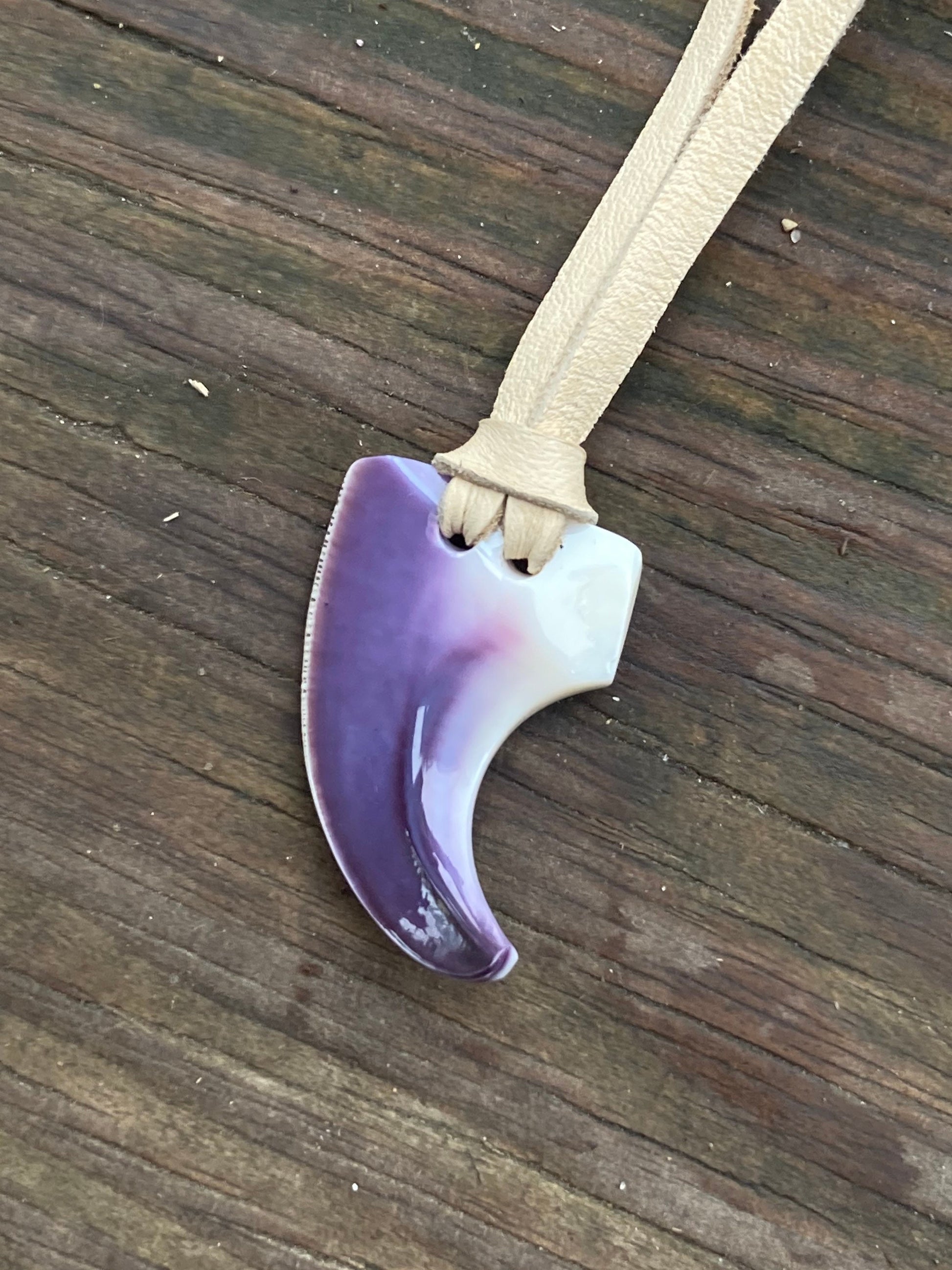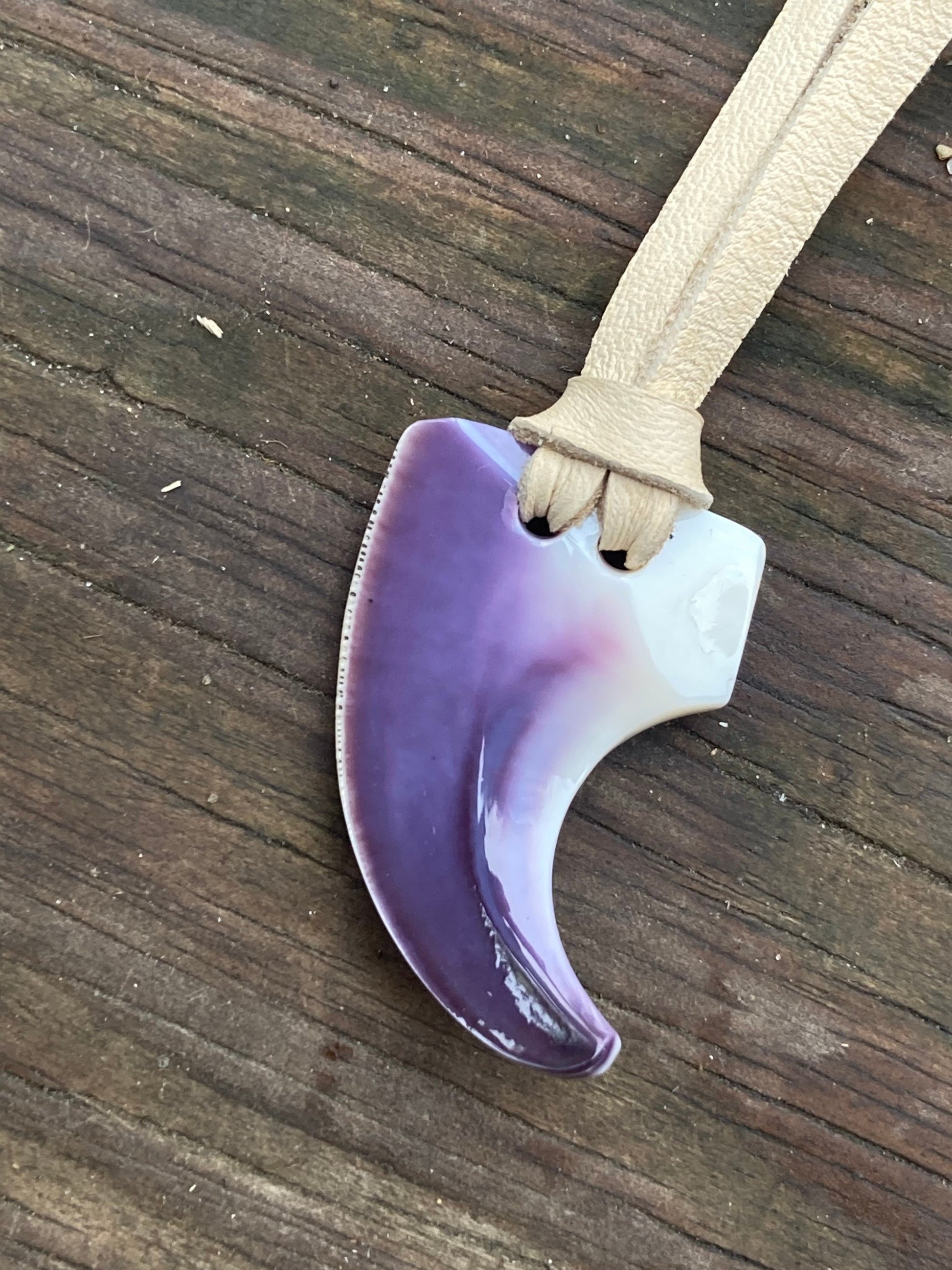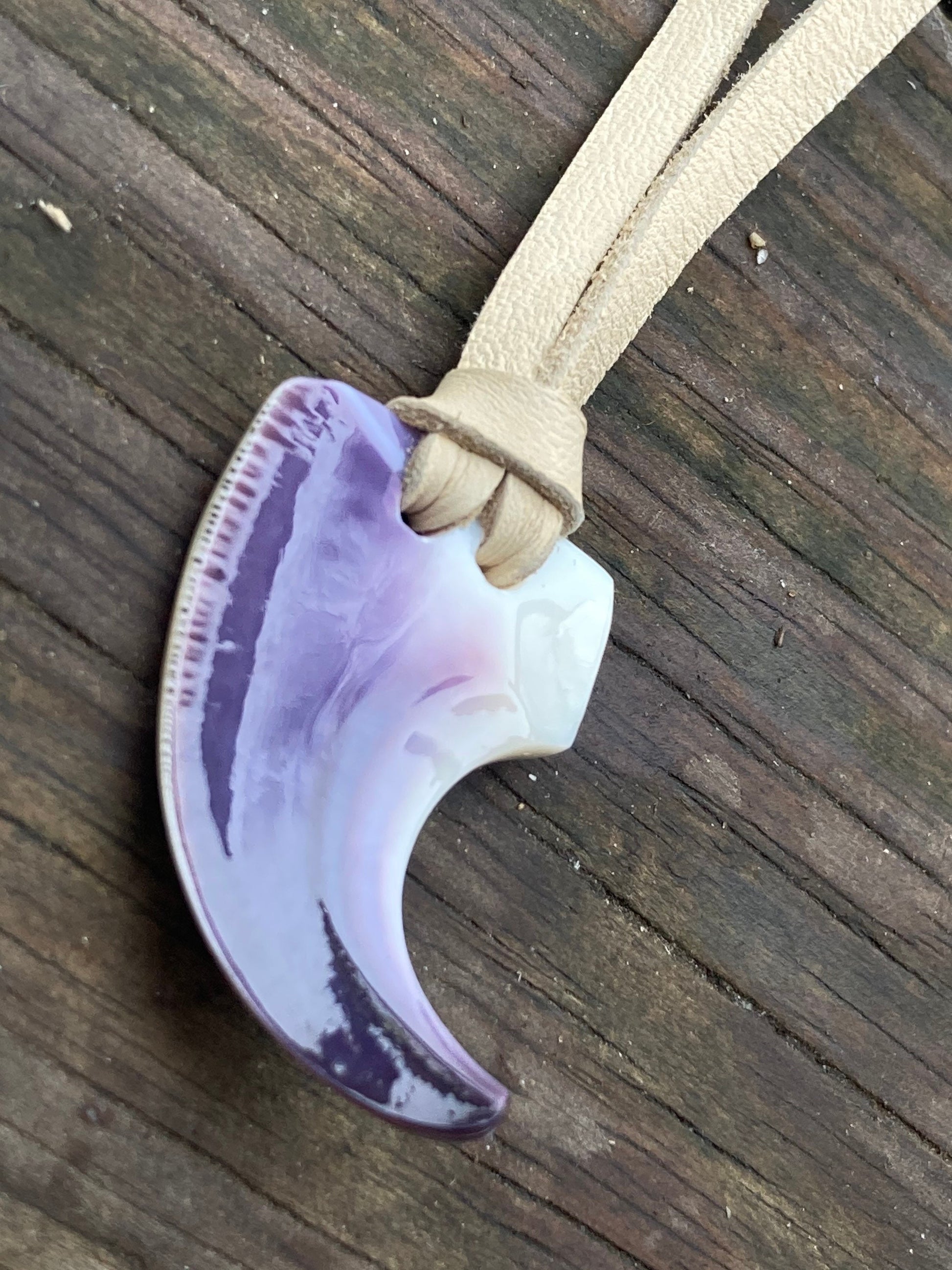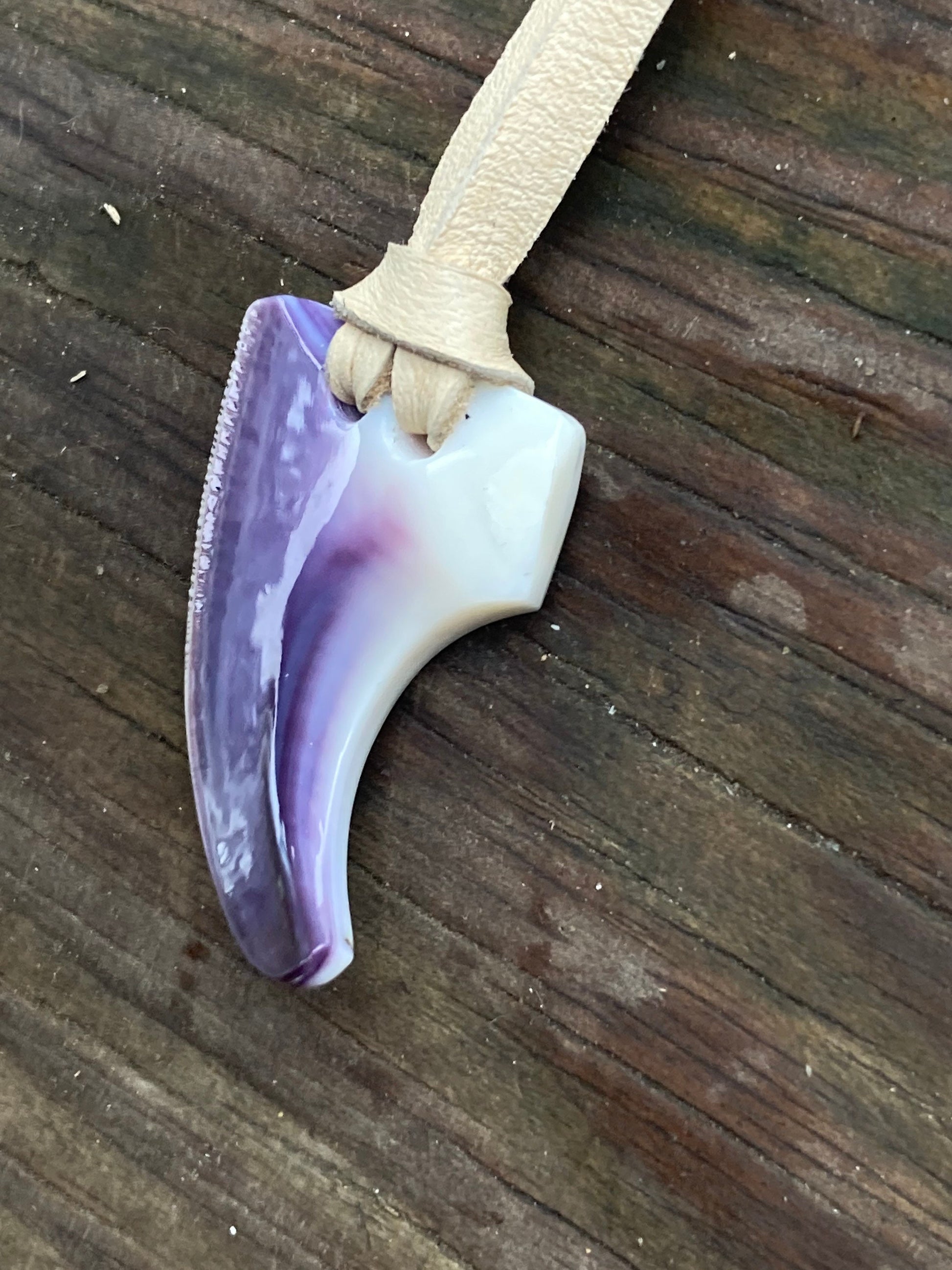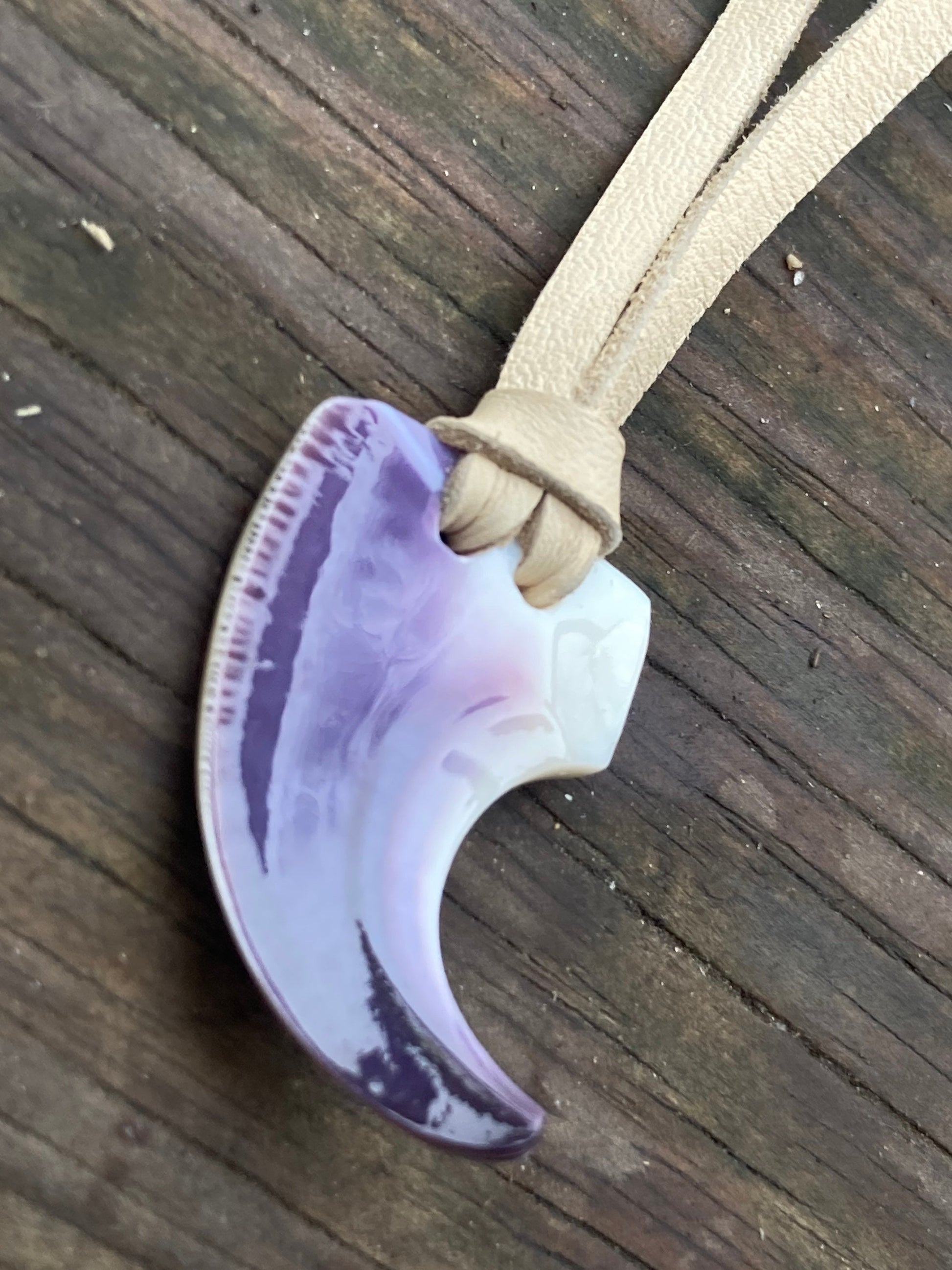 The claw incorporates the natural curvature of a certain part of the shell but the thing is that certain part is usually without the purple which makes this a rare piece.
