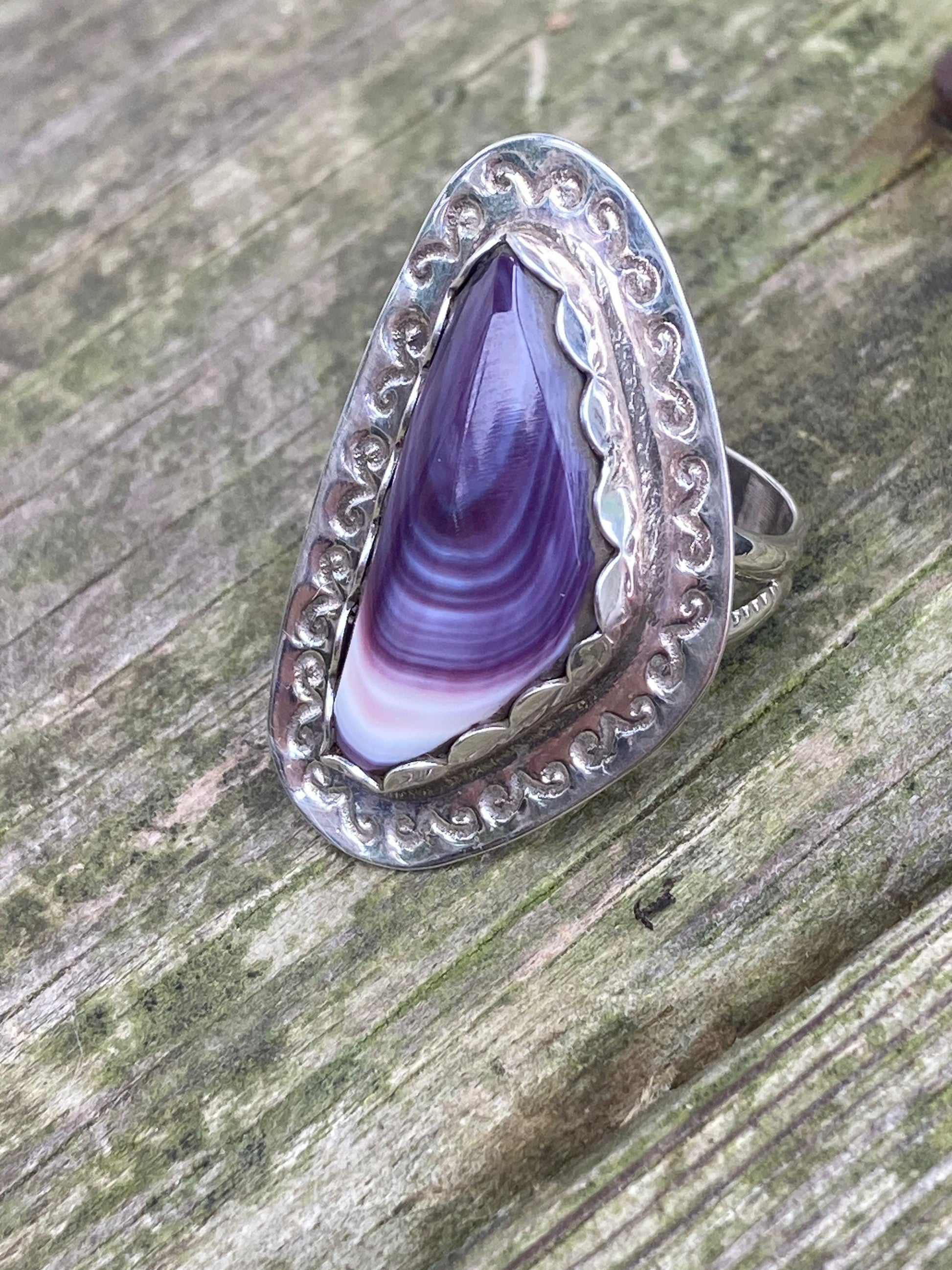 Wampum is a traditional shell of the Eastern woodlands tribes of Native America. The white and the purple comes from a quahog shell clam.