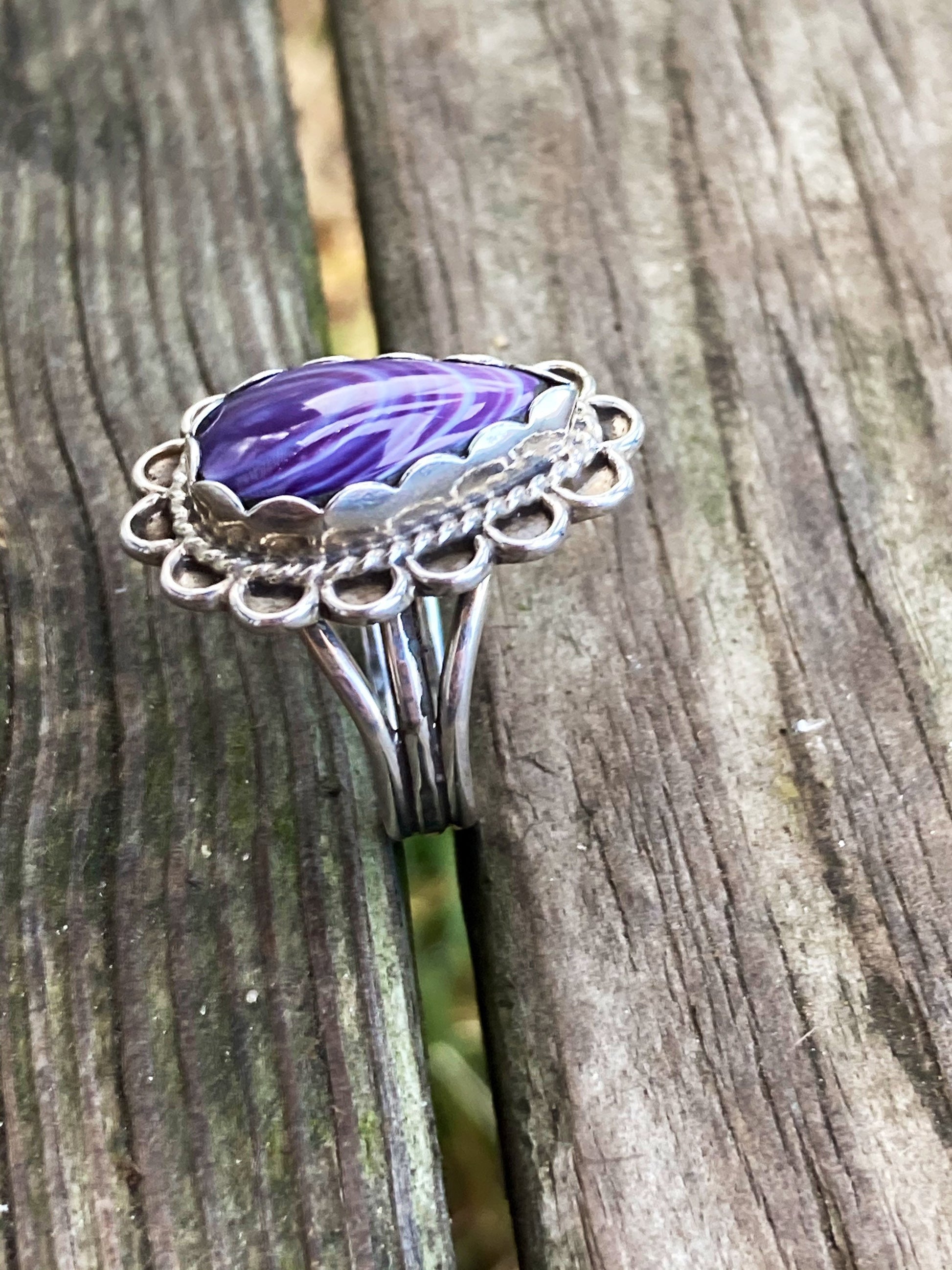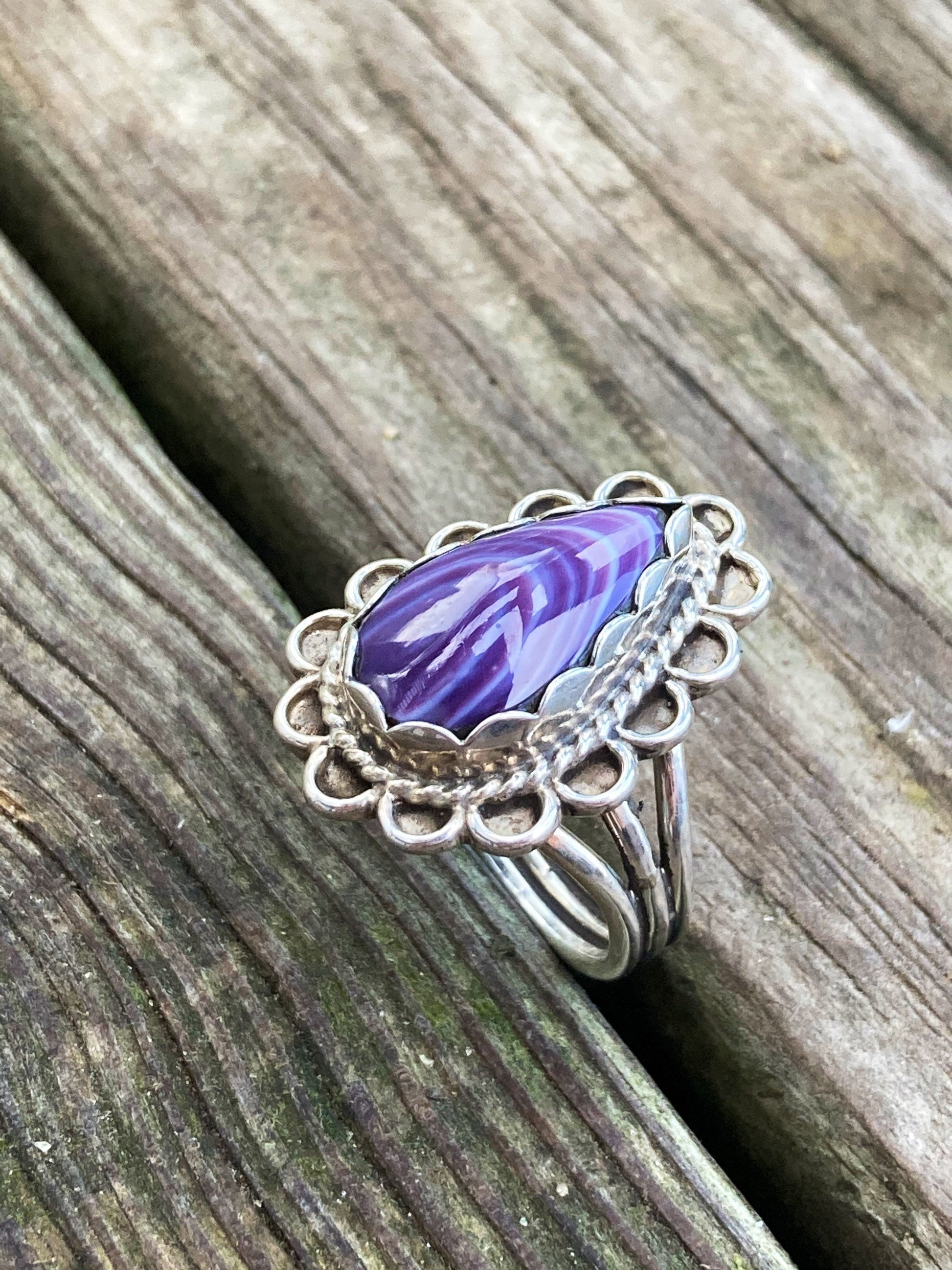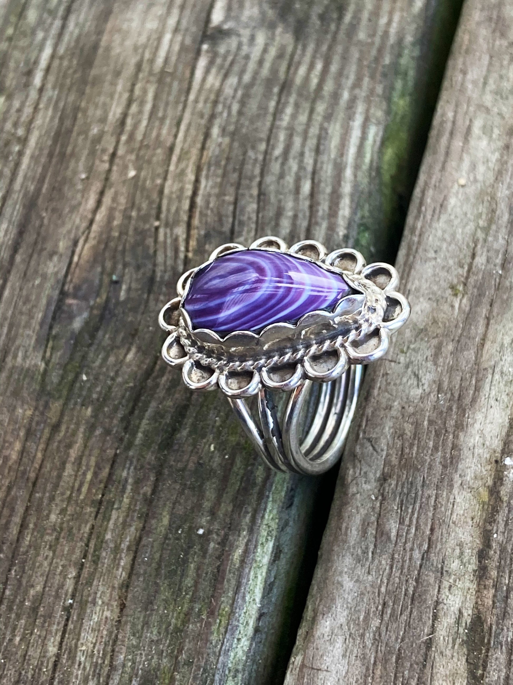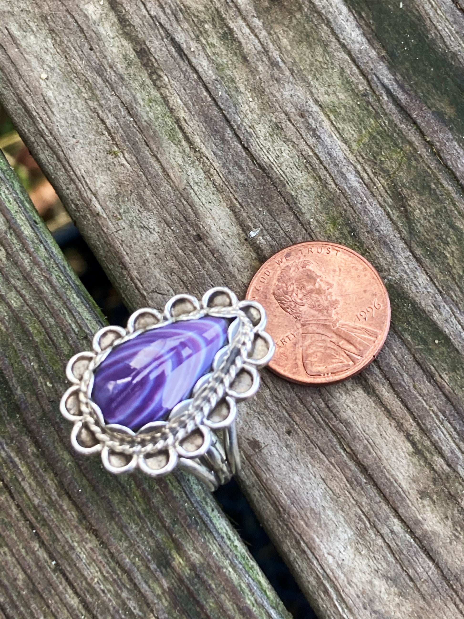 Wampum and Sterling Silver Tear drop Fancy border ring